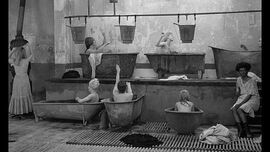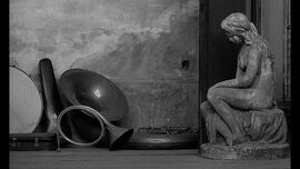 全片以黑白为主,仅有的几个彩色镜头也基本都以红色为基底:红色的高跟鞋、鲜红的内脏、腐烂物等等,单调的黑白色带着降低欲望的脚步踏入观众眼帘,而彩色仿佛象征着所有的罪恶和肮脏令人倍感不适。黑白色彩下的人们变得缺乏生气,哭泣或激动都变得麻木不堪,人们在被掌控下丧失掉了所有的生气。