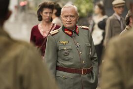 他们这番博弈所下的赌注不能更高了:他们赌的是巴黎的生死存亡。法国丹麦混血演员尼尔斯·阿莱斯楚普(Niels Arestrup)出色地饰演了肖尔蒂茨。这是一个圆胖的老派普鲁士将军,他在1944年夏天被派往法国,成为最后一任驻巴黎的德国军事长官。他携带着希特勒的命令:任何情况下,都不能投降,不能将巴黎移交给同盟国。德国人将战斗到只剩最后一人,把这座城市变成废墟。由于德国的战败已然确凿无疑,肖尔蒂茨别无选择,只能着手去准备毁掉法兰西人的首都:摧毁巴黎的每一架桥梁、每一座博物馆、每一所教堂,甚至,摧毁埃菲尔铁塔。另一方面,一位能言善辩的瑞典外交官——由同样是老戏骨的安德烈·杜索里埃(André Dussollier)扮演——企图说服肖尔蒂茨将军放弃这个念头。