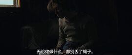 一开始母亲教会失明的儿子,用绳圈套住自己,然后找到每个布下的陷阱,查找是否抓到猎物。还有每天去挤羊奶、到河边钓鱼。每天晚上一起听爸爸妈妈一起录制的讲故事录音。当孩子比较熟练掌握一切时,母亲不告而别。只留给他三条原则和生存的技能。男孩秉承着母亲留给他的“所得猎物森林一半,自己一半;感到绝望时哼唱妈妈教的歌曲;永远不要放开绳索”三条经验,艰难地生活着。每天他都要听妈妈留给他的三条经验,然后按部就班地完成妈妈教给的生存方法生活下去,孤独而无望。一天挤羊奶的羊也被森林里的怪物拖走了,男孩非常恐惧和绝望。食物越来越少,生活越来越艰难。突然有一天,一个猎人闯入了男孩的生活。猎人打到一头鹿,与男孩分享,还帮助男孩生活,慢慢地取得了男孩的信任。猎人还到处男孩母亲的日记,一篇一篇读给男孩听,但是读到最后,猎人不读了,可能是发现了真实的原因,影片里一闪而过,没有看清楚。因为丛林的异响,猎人跑入丛林,去探究究竟。第一次看到一只熊被猎杀,一只怪物快速袭来,他逃跑了。第二次,他找出捕熊夹,进入丛林想看清怪物的面貌,但是一去不回。男孩不见了猎人,就冲进丛林寻找,因为绳索不够长,他脱开了绳索,继续前行,终于遭遇了怪物。他非常害怕,唱起了妈妈经常教的歌曲,怪物竟然也哼唱了起来。原来怪物就是妈妈,她已经转变成了怪物,所以她才离开儿子。而在妈妈紧抱儿子时,失明儿子手中的尖刀也刺进了母亲的胸膛,母亲死去了,儿子转变了,眼睛有了神采。