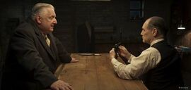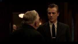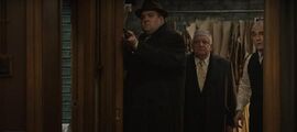 前情:博伊尔家族与拉芳丹家族有冲突,梅宝利用这种冲突从中渔利,但是博伊尔家族察觉到了内奸的存在,并且弗朗西斯抓紧了清查内奸的行动。梅宝的暴露只是时间问题。于是,老裁缝通过假造“the outfit”组织的命令(鼓励),让博伊尔家族与拉芳丹家族的战争升级,希望通过这种手段让双方两败俱伤,起码重创博伊尔家族,好让梅宝可以顺利脱身。但是老裁缝的行动至少是效果不明显的,梅宝也察觉到了自己朝不保夕,所以她引入了FBI。但是在一个裁缝店里,窃听器能窃听到什么重要内容呢?也许正是由于录不到致命证据,所以老裁缝顺势抛出“录音带”,借此引发两派决战。(由于电影剪辑的关系,很难分清是FBI的出现在前,还是老裁缝假造“the outfit”在前,在此假设为后者。)