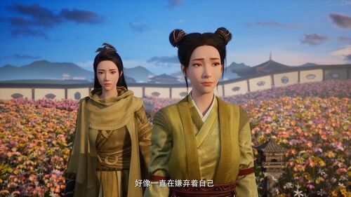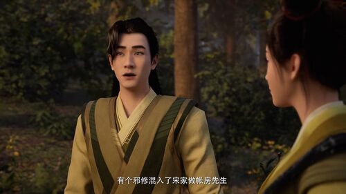 这里官方制作组吐槽了下给巧倩吃忘尘丹的事情,还有这里不知道是不是提前做好的动画,几个人的服饰跟现在完全不同。如果说战斗的时候可以穿了黄枫谷的衣服,这里是便服,那么后面不知道怎么卫娘跟宋师兄又换成了黄枫谷的衣服,主要是卫娘头发也变了。