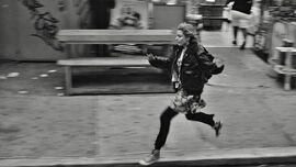后来傻大姐从布鲁克林搬到了chinatown,她穿着碎花小裙,一百年不换的皮夹克,牛仔裤,converse,背着小包快乐地在街上奔跑,那年,她才27岁,无忧无虑的年纪,也不想着称霸全国,就乐呵乐呵地奔跑。她非常满足,一边奔跑一边跳舞,背景音乐是《modern love》(如果没记错的话),妈的,看了两次还是觉得这段最屌逼,快乐到我眼泪都快流下来了。