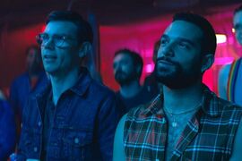 再说优点:对于男主人格塑造,前三集我十分喜欢,前三集的男主角人格魅力无限,和老版QAF的B叔有的一拼,B叔是温柔对待身边每一个人,独立且强大。而我们新版里面的布罗迪,第一集里挺身而出帮明格斯挡了枪子,后面在大家经历巴比伦枪击案都很消极的时候,用自己的抚恤金,办了鬼面同志派对(goast fake),通过狂欢的方式纪念死去的朋友,而诺厄朝自己发火后,生气出去,路上还顺便炸了达迪乌斯辣鸡父母的车,为达迪乌斯报仇雪恨。他帮助露丝照顾两个双胞胎孩子,可是孩子一直哭个不停,他还要去鬼面同志送酒水房的钥匙,无奈之下,他只能带着孩子去送钥匙,最后当然被骂了一顿。