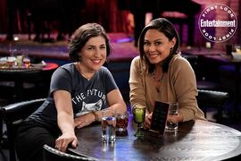 2. 米兰达对“第四面墙”说话时,往往是一种死党之间说悄悄话的感觉,所谓众人皆醉,观众独醒,彼此之间进入神奇的时空隧道。而Kat和观众说话,就感觉是一位负责任的主持人,按下暂停键,然后给你耐心地解释一番context,缺少那种“你懂我吧电视机前的宝贝”的惺惺相惜,“这什么鬼”的吐槽,甚至是不发一言,纯粹出了个大丑,又尴尬又羞涩又有几分小骄傲。