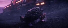 洛基B穿越到了蒙古,掉在了沙漠上,这段致敬了《钢铁侠》。