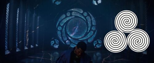 第5集导演旋转摄像头,让门上的沙漏图案横了过来,变成了北欧字母达加斯(Dagaz)。