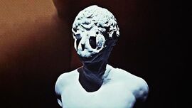 之后房间变成6点,派对喝酒的啤酒乒乓,cd盘,大闹钟,便签纸,忧郁的雕像,9点 地球仪,表情渐渐扭曲的雕像,到最后应该是12点,连钟也没了,雕像已经完全怪异,光线越来越昏暗,设施越来越少,