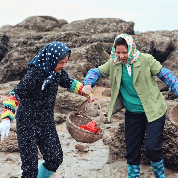 片中高潮戏是归亚蕾老师以缤纷多彩的“惠安女”造型为妈祖祭祀庆典表演打腰鼓,这也是众多闽南民俗的其中一项。惠安女被称为“穿得比少数民族更少数民族”的汉族人。头披鲜艳的小朵花巾,捂住双颊下颌,上身穿斜襟衫,又短又狭,露出肚皮,下穿黑裤,又宽又大。