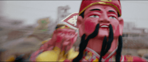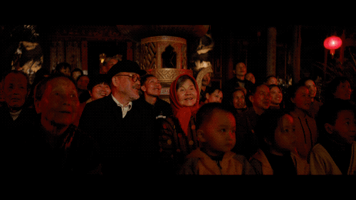青娥去世时,泉州民间“大摇人”表演队,像“神仙下凡”般走街串巷。平时只要有红白喜事或鬼神祭祀,他们都会出来表演,打扮成西游记或八仙过海里的人物,这些头戴面具与服装都是他们自己做的,“扮仙”的大多数都是60岁左右的阿嬷们。他们在电影中的出现,也体现了人、神、鬼和谐共存的闽南特色信仰。