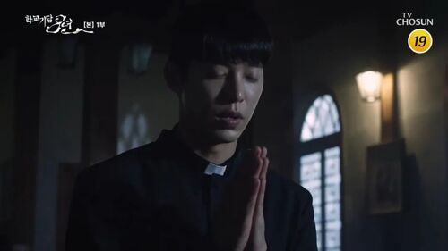 此时,又一位主角登场,是当了神父司祭的灿,他也曾经在这所学校读书,和民玖还是朋友。