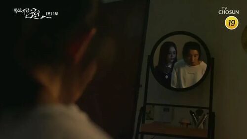 比起没头没脑的吓人,这种带了点“因果报应”的恐怖元素是非常典型的韩式恐怖,恐怖之余,也让人无比唏嘘,像我们熟悉的《女高怪谈》系列,《考死》,《老师的恩惠》等等。