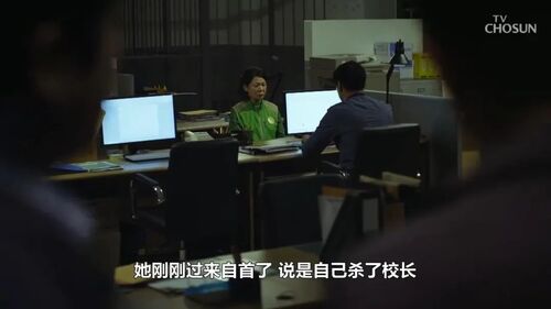 另一边则是学校保洁阿姨来到警局自首,说校长是她杀的,还一直嘟囔她指挥了她儿子动手。