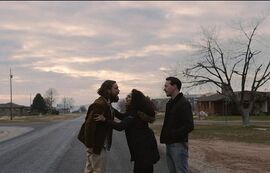 另一个突出的手段是长镜头摄影,基本上每个场景都用一个长镜头完成,男主角带着小孩在公园放烟花,以及最后三人在屋外吵架的两段效果不俗,充分显示出导演在结合场面调度与演员表演的功力。而不少在行驶的车内拍的段落则参差不齐,有时刻画出男主角强烈的情绪波动,有时沦为了单调枯燥的对话,夫妻两人深夜在车上的一幕较为明显。配乐声效方面成功模拟出惊悚片的氛围,全程刻意用扣动手枪扳机作为背景声,这种声效延续了开头一幕突如其来的暴力惊悚气氛,故意营造出男主角随时爆发的压抑与处心积累的杀机。这种策略在某些场景里增添了悬疑感,不过,这种诱导性的音效并不能总是有效地融入到这个夫妻分居的故事里,常常与人物的内心想法或情绪背道而驰,参考爱德华·沙尔茨的《克里夏》就知道这部运用的稚嫩之处。