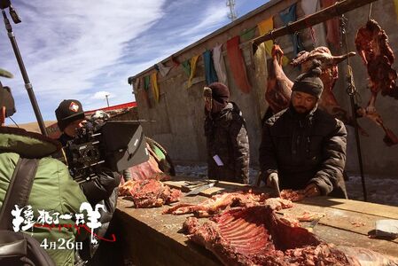 扎西对待表演很认真。我们拍金巴问屠夫羊肉的价钱、屠夫正在剁肉那场戏时,我突然看到扎西的表情有点不对劲,很拧巴,就喊停了。最后才知道他不小心了剁到了自己的手指头,差一点就把自己的手指头给剁下来了。我问他你怎么不停下来,他说怕影响司机金巴的情绪就忍住了。
