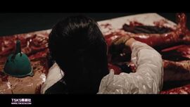 马大姐在实施了刀扎放血等一系列酷刑后,又给李英泰打了催情针,然后割下他的丁丁,丢进了榨汁机,再用漏斗灌他喝下丁丁汁,说让他完整地上路……