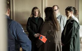 最后想说Ulrich 和 Holly。尤里是一个非常阳刚的名字。Ulrich人如其名,一出场,比较光明磊落,能感觉到他的能量比较正气。Holly经历了抢劫案中丧失家人的悲痛,但能看出来,在影片中也是比较正面的形象。但是审案期间,Ulrich却因为将受伤的黑工遗弃桥下并最终造成黑工身亡,而变成了施加伤害的人。一个施害者和一个被害者,他们两个会作出怎样的裁决呢?我觉得这两个人,是影片的高光点。因为赞颂了人性善的一面。最终,holly作为一个被害者,选择了原谅。不管是谁杀的孩子,这件事情足以让他们的余生生活在悲痛之中。而Ulrich作为一个非故意的施害者,他想要认定frie有罪,折射出他内心对自己罪过的深切自责和急需的惩罚。他认为陪审员不应该站在道德高地去宽恕一个人,而只是应该判定被告有罪或无罪。他本人,也不想被宽恕,他自责太重,只想要惩罚,所以最终他选择了自首。holly作为一个被害家庭唯一幸存的孩子,她的事情被曝光,她又被法庭批准可继续参与审判,以及她最终选择了宽恕frie,理解ulrich,让我看到了divinity。