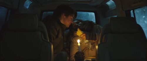 他们开始整理食物和水,利用车上的物资,点上蜡烛准备长期住下来,吃喝拉撒都在车里,等待救援。不得不说这个车里还挺透气,不光可以点蜡烛,不缺氧,便便也闻不见。
