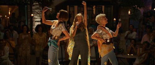 两条平行线故事,用同样的明媚给我们讲述了两个年轻女孩如何勇敢寻找自我、坚定自我的人生旅程。当暴风雨过后,Sophie一度以为纪念妈妈的Party就要失败时,海上驶来几艘大船,一众宾客,他们还未到岸便开始高歌,ABBA的《Dancing Queen》响起,船上的人,岛上的人,唱吧,跳吧,就尽情的投入到这团聚之中,舞动欢乐!