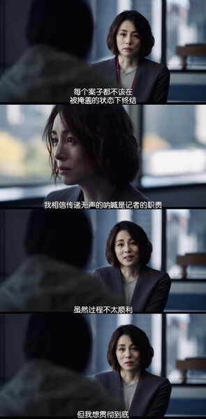 除了主角以外,剧集中最让人印象深刻和心碎的角色就是自杀公务员的妻子,她背负着舆论的质疑,备受丈夫去世的摧残,她渴望真相也害怕和丈夫一样的人受到同样的伤害,寺岛忍对于角色的把握相当精准,戏份不多的她创造了剧集中最直击心灵的情感能量,最后她鼓起勇气准备向政府部门发起诉讼的坚定更是非常动人。