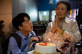 电影给出的解法是,一个外来的租客,反而是对老人最没有要求的,里面确实也有很多套路,比如回家发现自己的亲人过世、辛辛苦苦赚钱,妹妹却依然没学上之类的,面对这些强行催泪的梗没有太大感觉。