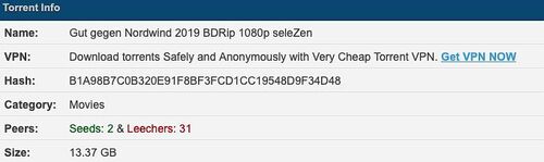 最后我选择了8.15GB的Gut gegen Nordwind 2019 x264 BDRip 1080p Rus Ger ExKinoRay版本,和13.37GB的Gut gegen Nordwind 2019 BDRip 1080p seleZen版本,因为我平时用27吋的显示器看电影,所以10GB左右的资源是最合适的,如果用投影仪的话建议20GB以上的remux版本,压制损失最小。