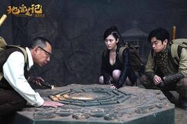除特效之外,盗墓小说另一大改变难点,则主要聚焦在台词、剧情方面。小说是文字的艺术,而电影则是影像的艺术。因为盗墓小说,大部分都是由“视觉奇观 人物对话”所构成,所以改编之后,很容易就会落下废话太多、废戏太多的病根。而《地宫笔记》,刚好完美地规避了这一改编难点。与原著相比,编导在台词方面进行了大规模的精简与提炼,力求做到用镜头说事,用画面言情。它没有刻意地去掉书袋,而只在关乎剧情推进的必要处进行详细解答。