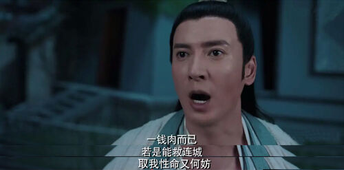 影片中乔生为连城割肉做救命药引的行为让猫精宾娘十分嫉妒,但她理解为连城的美貌让男人丧失了理智。