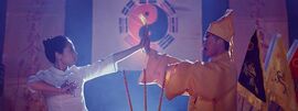 结尾的中心思想,“凡事留一线,日后好相见”,我猜是想告诉大家,我们片子虽然特效用的是5毛钱烟花,全程模仿周星驰,但我们没有装,坦荡荡的照抄。坦荡因为我们致敬的是英叔,致敬的是周星驰。希望大家的评论不要让我们灰飞烟灭,毕竟经费有限,我们努力了。