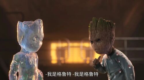 正当两个格鲁特宝宝针锋相对之时,真格鲁特和星爵一样,突然就开启了斗舞模式——不愧是银河护卫队的成员。