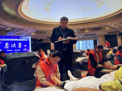 2,同样被质疑真实性的搓澡工比赛,也确实存在,一般是洗浴中心内部进行。公开比赛的话,其实足浴行业举办得更多,电影中的搓澡比赛规则,就参考了足浴比赛的规则设计。没错,从体系的科学度、完整度和国外影响力来说,足浴行业非常强。