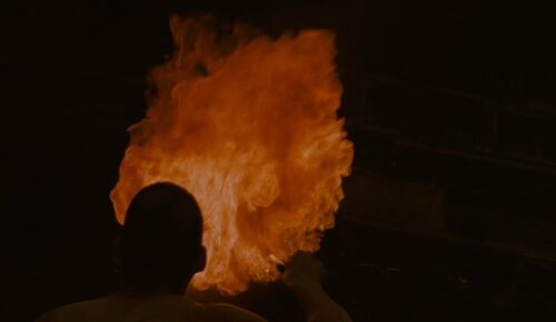 Michele所带给Alex的实际是消费社会物质崇尚的变体,它游离在新桥(“自由”之名)之外,只是被冠以了浪漫、疯狂之名,卡拉克斯将其影像化为疾速闪烁的灯光。而Alex厌恶灯光(因此Aelx在全片中最常见的姿势,就是遮眼,而Michele和Hans只在睡觉的时候才遮眼),他的自由是火焰的自由,它不会被束缚于某种固定的形态,并能够在瞬息间爆发出强大能量,带有自毁与摧毁的倾向。二者虽然都是耀眼且闪烁的,但火焰本身作为一种原始力量的象征,与消费社会的灯光几乎是对立的,而Michele显然误将二者混为一谈了。