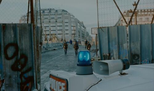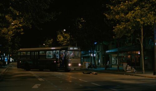前后对照影片内容,个中意味已经昭然若揭。在影片开头,一组正反打交代了Michele和昏倒的Alex的“相遇”后,代表着国家机器修复力量的巡逻车停在了Michele面前。如果说象征现代消费社会的汽车碾碎流浪者Alex的脚踝尚且需要经过一段路程的铺垫,那么巡逻车的到来则仿佛凭空出现。仅有一两秒的发动机轰鸣声作预告,它刺眼炫目的车灯便霸占了整个屏幕——一种赤裸裸的肌肉展示。