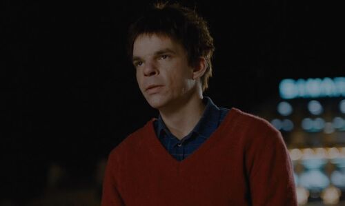 Hans自出场起便从内到外穿着白蓝红三种颜色的衣服,如同一个被放逐到新桥的国王,身着国旗的颜色,手握整个王国的钥匙,但却用肮脏不堪的外衣来掩盖自己的身份。从始至终他似乎都没有在镜头前脱下任何一件衣服,即便与赤裸的Michele相拥时亦如此,镜头很快切到了第二天。只有一处例外。