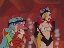 我第一次看时间飞船时,不是很投入,直到妖妮大姐三人众出场,才调起我的兴致,呼哈哈的插曲,特别的男子汉,也特别的滑稽,可能就是因为这首曲子,我期待每星期六早上的 时间飞船,这首曲子一出,我就无比亢奋!~ 忽然发现,蓝宝石之谜里的玛丽三人众不就是模仿妖妮大姐他们嘛!~后来玩 彩京出品的 武装飞鸟,里面登场的寻宝三人组也是 御姐,胖子,瘦子的经典搭配组合!~