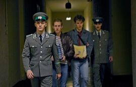 男主角马丁·劳赫(Martin Rauch)是东德边检站的一名普通士兵,平日的工作就是查收非法入境的违禁品(下图左一)。