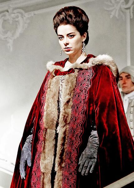 相比第一季,三年过去,叶卡捷琳娜的扮演者 玛丽娜·亚历山德罗娃 好像更丰腴了一些,穿戴服饰珠宝华贵艳丽,披散头发穿长袍睡衣高雅可爱。化妆风格方面,她的眼妆更重,很好地衬托了浅蓝色虹膜,唇部却一直是my lips but better状态。剧中所有女性角色的唇妆都是这样,很显年轻。但叶卡捷琳娜这种妆容配上眼妆,略显苍白,不过突出了高贵冷艳和雷厉风行的感觉。看剧的每一秒我都觉得她蜜汁像英国女王,尤其是嘴巴和眼睛,难道集美貌、智慧、权力和威严的中年女皇都差不多一个样hhhhhh