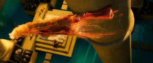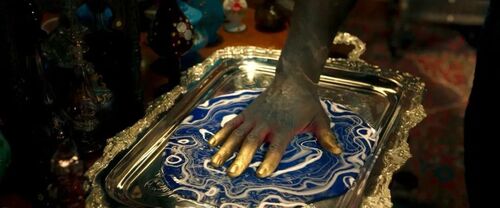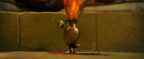 灯神本身,或许就意味着被压抑的情感与欲望。注意到阿莉希娅首次将灯神放出时,巨大的灯神占据了房间的每一个角落,即便它只能凭借阿莉希娅许下三个愿望来解放自身,灯神仍旧执意以庞大的身躯,扭曲的姿势居高临下与阿莉希娅沟通,欲望并不会因压抑已久而消失,从灯神的经历来看,它多次被封印的经历,往往也是因其欲望所致。