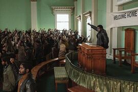 一个是他出狱后,在教堂的那次宣讲。表演得真的是太好了,我很少能见到这么激情澎湃的演说,而至关重要的就是,如他自己所说,他只是在讲真话而已,他将自己内心的思绪,如潮水般宣泄出来,而这种真实的情感,在人群中得到广泛的共鸣,这一幕所具有的冲击性,可比什么枪战,爆炸要猛烈得多,因为这是一种纯粹语言的力量。