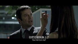 6,女主的行动:女主很帅得入侵,并且秀了一番魔术将芯片藏在头目的领带下面(虽然我不知道这个细节有什么深意毕竟头目很要这个芯片,而且他真的找不到芯片,并且女主角除了将芯片藏在领带里面之外就没有其它地方可藏了吗真是奇怪奇怪啊)并且成功得把自己卖了让敌人抓住她,并且关键的一点就是:她假装不情愿得与敌人交易(因为敌人对这个芯片势在必得因此她很有自信敌人一定不会干掉她,这个设定无可厚非),并且将敌人引到了机场交易.