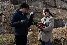 电视剧一共6集,全部在长野的深山里拍摄。也有比较冷的时期,体力上很辛苦呢(笑)。祭典的场面,大型的巡回演出也很多,事件接二连三地发生,所以很热闹。因为村子很早就因为灾害被孤立了,从头至尾都被逼得走投无路,大家一直在演疲惫不堪的戏。