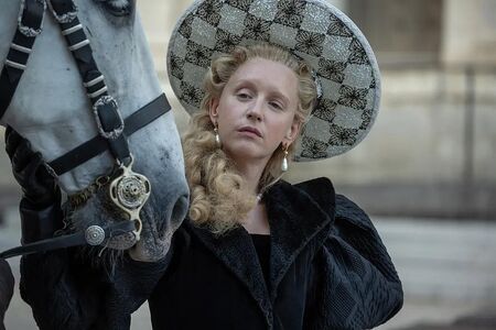 黛安这几个侍女头上的东西叫做方当诗女帽(你也能在《宠儿》中普遍看到),是在1680年代出现,并流行至1710年代的巴洛克晚期头饰,提前跑到了一百五十年前,我也不知设计师是在想什么。想想看,要是在讲慈禧太后的电视剧里出现了嘻哈裤......