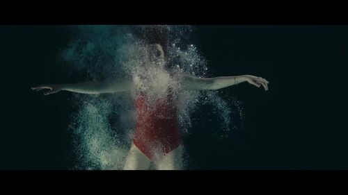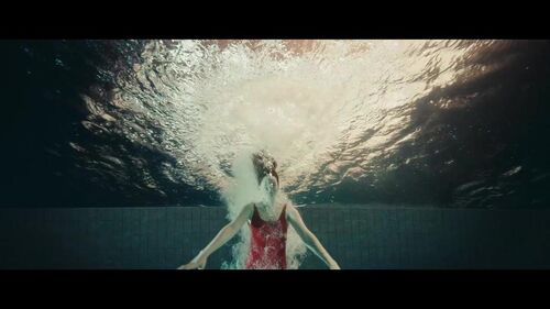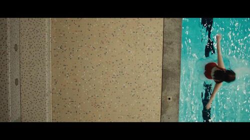 接着出现了她游泳的画面,画面中除了她全是黑色。