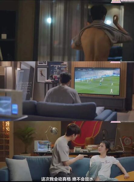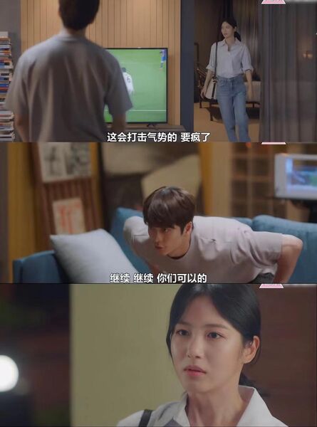 可是男方还在看球赛,一点都没有要看女朋友有没有受伤的样子。
