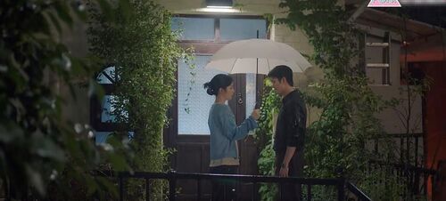 故事一开始,手提购物袋从外面回家的吴真(辛睿恩 饰)打开家门,车民载(姜泰伍 饰)立刻上前与她拥吻。
