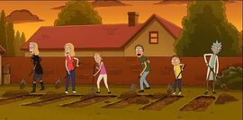 莫蒂回到了后柯南伯格(Cronenberg)的末日宇宙,杰瑞在这里生活得不错,精通生存之道,还会用烧灼术封闭伤口。克隆伯格化发生在S1E6 “Rick Potion #9”。而柯南伯格化了的贝丝和Summer仍被冻在冰箱里(S3E1 “The Rickshank Rickdemption”)。