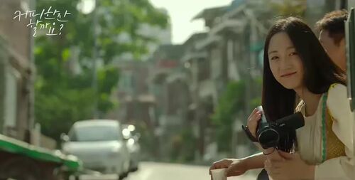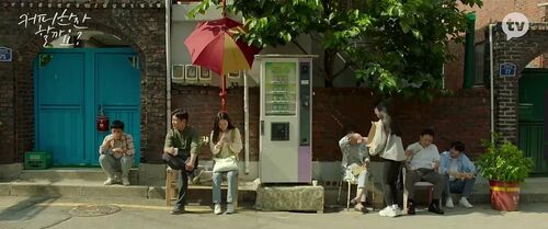 第5集开头用纪录片的形式,以摄影机背后的某个人的视角,记录TA看到的日常景观,随后姜高飞与老板遇到一位叫“光”的越南人,引出自动贩卖机咖啡故事时,漫画家举着摄像机登场,我们才知道开头原来也是她的视角。