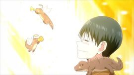 可以说女主角的个人魅力是故事前期最大的亮点。随着故事的进行,越来越多的人加入了男女主角的队伍,组成了讨伐饼干锤子幕后黑手的骑士团。以这部漫画的篇幅来讲,中后期出场这么多人似乎有些照顾不过来。但实际上作者把每个角色的戏份平衡的非常好,都有各自的高光时刻,没有人会给人以龙套的感觉。大家嘻嘻哈哈互相串门,一起吃拉面,全然没有要从大魔王手中拯救地球的紧张感,反而像是什么体育俱乐部的日常。相对古早的设定和画风更增添了这种日常的温馨感,甚至连大魔王也时常跑来跟大家聊聊天,如果不是作者时不时发个刀,真的以为故事就要这么平平淡淡结束了。