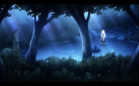 当晚,精疲力尽的乌妃来到小溪里沐浴。