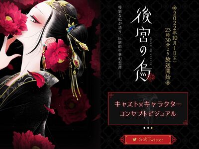 《后宫之乌》动画由万代南梦宫影视制作BN Pictures操刀,导演是参与过《银魂》的宫胁千鹤,日剧《凪的新生活》的编剧大岛里美担任剧本架构。