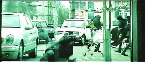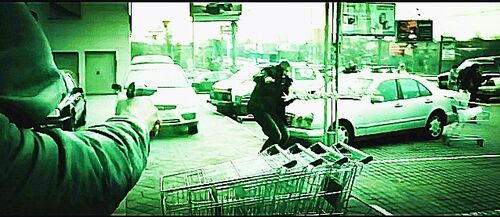 当时男主在超市大门一边伏击。盲目追踪的杀手冲出大门,就遭遇手枪射击。